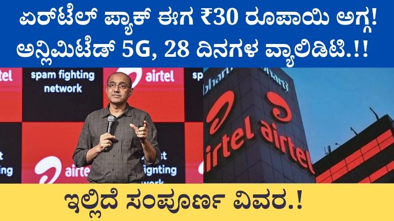 Airtel Pack Offer – ಏರ್‌ಟೆಲ್ ಪ್ಯಾಕ್ ಈಗ ₹30 ರೂಪಾಯಿ ಅಗ್ಗ! ಅನ್ಲಿಮಿಟೆಡ್ 5G, 28 ದಿನಗಳ ವ್ಯಾಲಿಡಿಟಿ – ಸಂಪೂರ್ಣ ಮಾಹಿತಿ ಇಲ್ಲಿದೆ.!!
