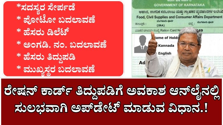 Ration Card Amendment – ರೇಷನ್ ಕಾರ್ಡ್ ತಿದ್ದುಪಡಿ ಹಾಗೂ ಹೊಸ ಸದಸ್ಯರ ಸೇರ್ಪಡೆ: ಆನ್‌ಲೈನ್ ಮೂಲಕ ಸುಲಭವಾಗಿ ಅಪ್‌ಡೇಟ್ ಮಾಡುವ ವಿಧಾನ.!!