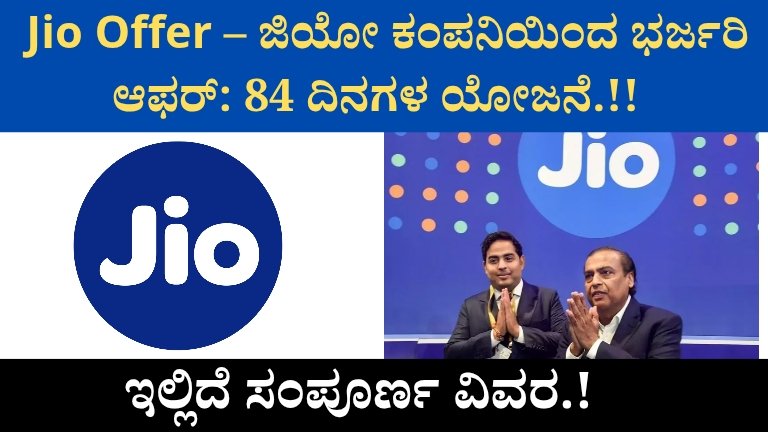 Jio Offer – ಜಿಯೋ ಕಂಪನಿಯಿಂದ ಭರ್ಜರಿ ಆಫರ್: 84 ದಿನಗಳ ಯೋಜನೆಗೆ ಡೇಟಾ, ಕಾಲ್, ಎಸ್‌ಎಂಎಸ್‌, OTT ಎಲ್ಲವೂ ಉಚಿತ – ಗ್ರಾಹಕರಿಗೆ ಸಿಹಿ ಸುದ್ದಿ!
