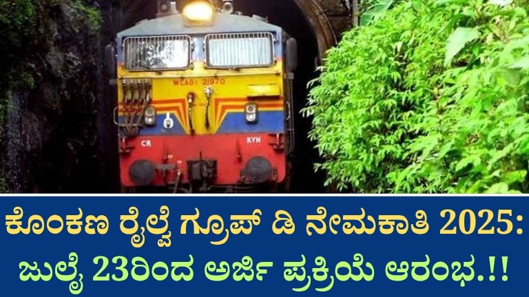 Konkana Railway Recruitment – ಕೊಂಕಣ ರೈಲ್ವೆ ಗ್ರೂಪ್ ಡಿ ನೇಮಕಾತಿ 2025: ಜುಲೈ 23ರಿಂದ ಅರ್ಜಿ ಪ್ರಕ್ರಿಯೆ ಆರಂಭ.!!
